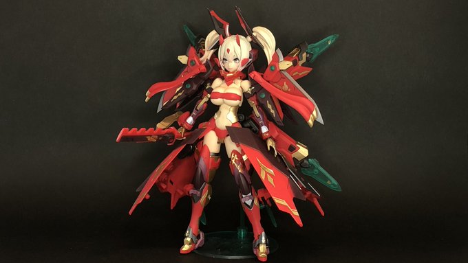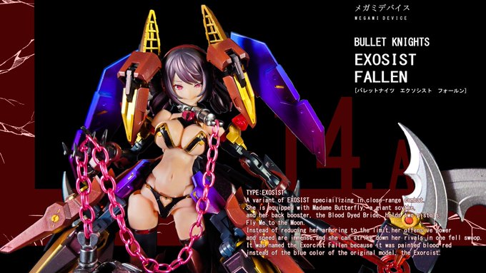 BKエクソシスト【FALLEN 】で参加させていただきます エクソシストを近距離戦仕様にカスタマイズ、暴力的な大鎌と2丁拳銃を装備、血染めの紅色へとチェンジした事から【聖職者】からの【堕天】を意味するFALLENと名付けました #第三回美少女プラモコンテスト #壽屋軍 #事前エントリー済