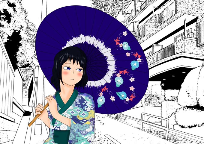 こんにちは!約1ヶ月振りのイラスト投稿です!今回は、夏らしい和風な女の子を描きました〜 (背景は素材を使用しました) #イラスト #デジタル #MediBangPaint #イラスト好きと繋がりたい #夏 #着物 #イラスト好きな人と繋がりたい