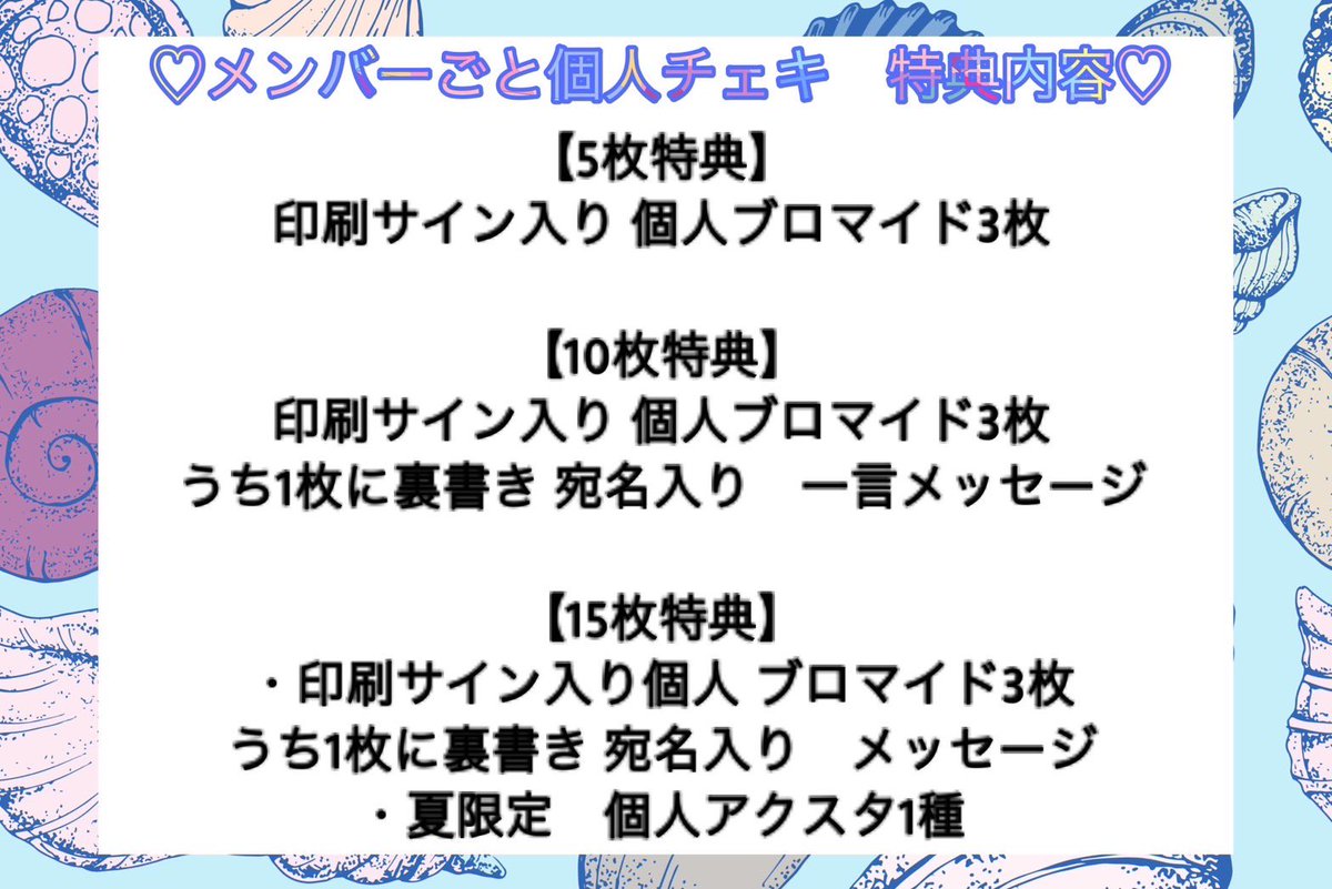 ⚡️明日7/12 ㈬ 21時⚡️ 【#夏の宿題チェキ 🌴】発売決定‼️ (サイン、宛名、デコレーション付き) ⚠️アラームセット忘れないでね! 浴衣の他にウィッグで夏ギャルになったり、マリンルック着たり👙💕 今回は15枚購入特典で激おもメッセージの他に、十味夏限定アクスタも付くよ!… twitter.com/i/web/status/1…