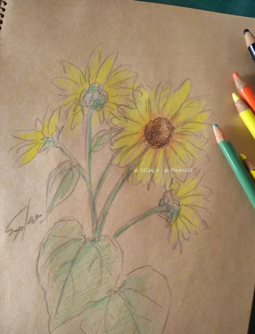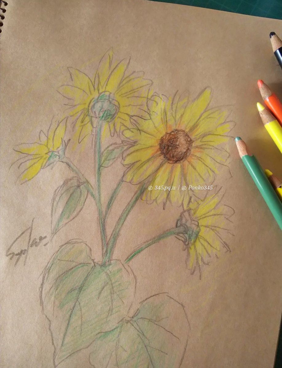 夏の草花のリース🌻鉛筆の下絵です。 向日葵・カモミール・デルフィニウム #夏の花 #リース #イラスト #イラスト好きさんと繋がりたい #Illustrator #ドローイング #鉛筆画 #草花 #botanical #ボタニカルアート