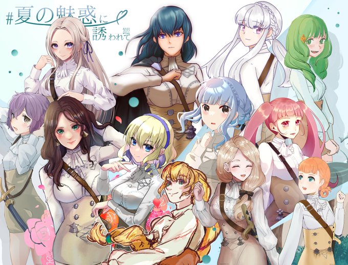 #夏の魅惑に誘われて2022 >RT リシテアで参加させて頂いておりました!! 集合絵めっちゃ可愛い〜🥰🥰 髪型アレンジOKとの事でしたのでヒルダとの支援Bを思い出しながら描かせて頂きました✌️ 素敵な企画をありがとうございました🙌🙌