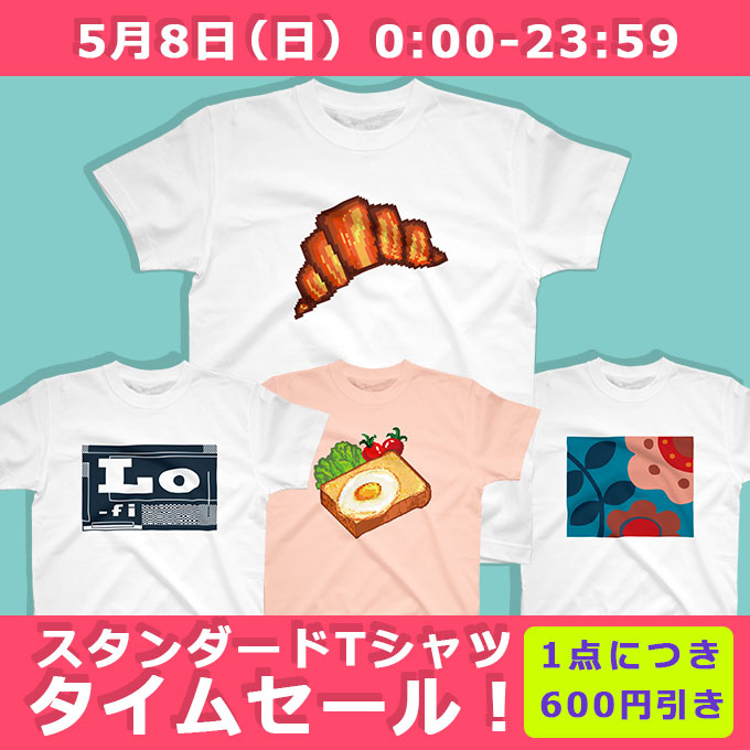 #suzuri さんのタイムセール🎊 5/8限定でスタンダードTシャツが1点につき600円引き✨ 🍀HIMARI堂「pixelクロワッサン」🍀 その他、いろいろ取り揃えてお待ちしています😊 どうぞよろしく❣ suzuri.jp/nikanaka?filte… @suzurijp #夏コーデ #suzuriで販売中 #ドット絵 #食べ物イラスト #ピクセルアート