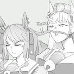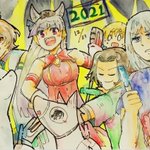 馬というかうさぎがコスプレしてるイラスト🤣このメンツでコスパフォして踊ってみたしてるので良かったら見てね! youtu.be/ym0PBcehLpQ?li… #夏休みはゴールドシップのイラストが増えるらしい