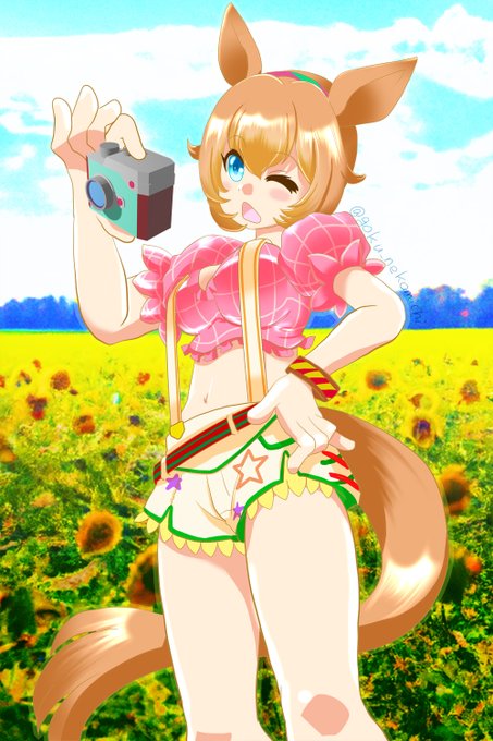 過去絵アップしようと思ったらクリスマスイラストだったので、季節外れこの上なさすぎるな…と思って夏休みっぽい絵を描きました! 「ンーーーーーー…もすこしだけ右、デス!」 #夏休みはタイキシャトルのイラストが増えるらしい