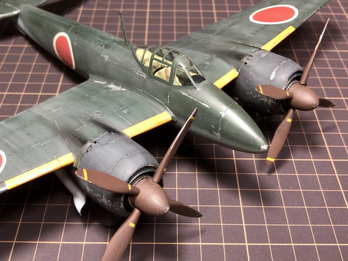 1/72ハセガワ呑龍Ⅱ型丙 電波警戒機装備型、ギリギリで完成。完全素組アクリル筆塗り。バードケージにも程があるキャノピーは当然マスキングなんか無理なので全部面相手描き。何とか私らしくできたかな。楽しい時間でした。素敵な企画ありがとうございます! #夏休み中島機祭り完成 #夏休み中島機祭り