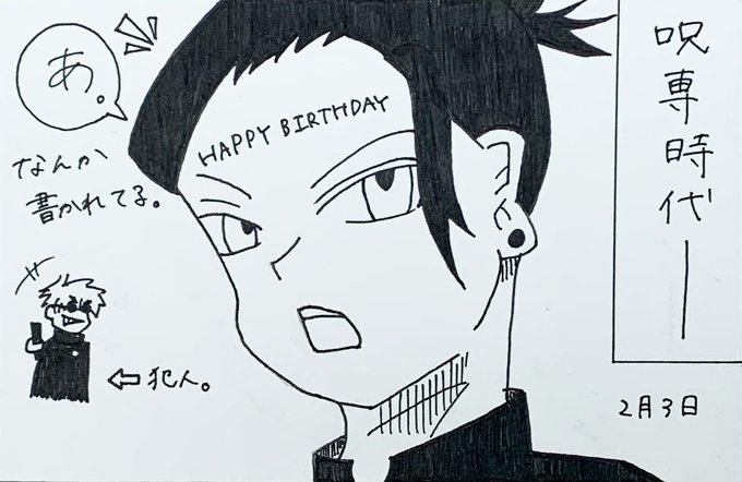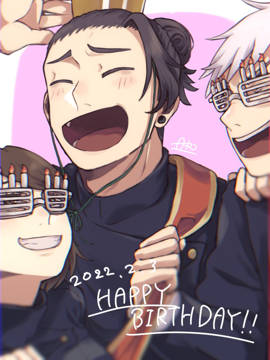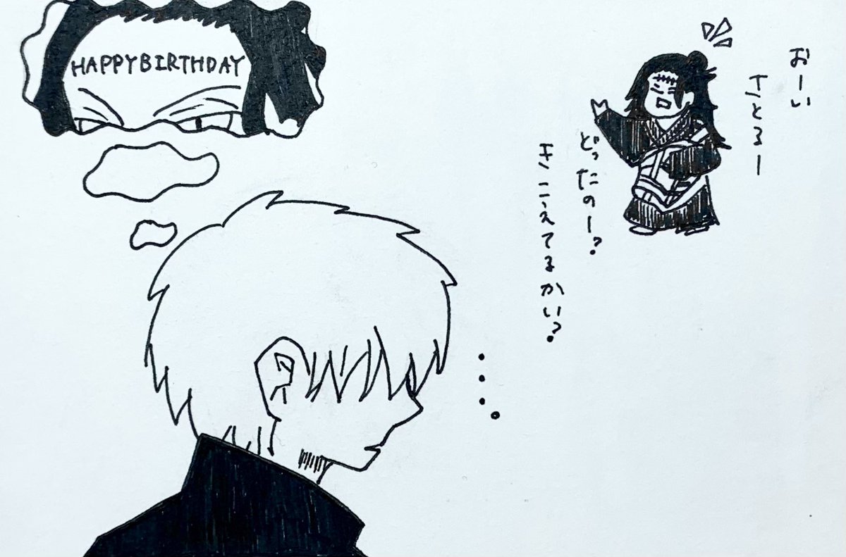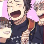 悟「バースデーの記念写真、撮ろうぜ!」 傑「私より悟のほうが目立ってるけどね」 悟「そお?まあ、超イケメンだからな!」 傑「そういう事じゃないけどね」 #夏油傑誕生祭2022 #夏油傑生誕祭2022 #夏油傑爆誕祭2022 #夏油傑誕生日2022