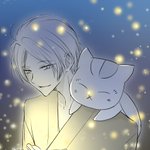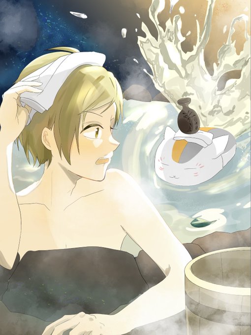 #夏目ワンドロワンライ 『海』『かき氷』 「ンぬ〜〜あ、頭が…」 「ほらポン太、あったかいお茶淹れたぞ」 「二人とも注文入ったよ」 「こら先生!仕事中なんだぞ!!」 海の家で臨時バイトの3人(と1匹?)🏖✨