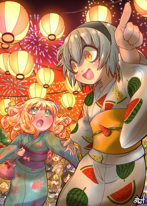 「夏祭り」 #毎月17日と18日はイナバの日 ということでうどんげとてゐを描いてみました。 今回は夏祭りに遊びに来て楽しんでるところです。 #東方Project #鈴仙・優曇華院・イナバ #因幡てゐ #夏祭り #透明水彩 #watercolor #水彩画 #水彩イラスト #アナログイラスト
