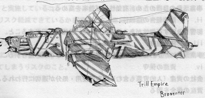 #架空機 #イラスト #Trill_Empire #夏祭り観艦式2022 親善飛行部門 トリル皇国機動航空軍(Trill-Empire Maneuver Airforce)[TEMA]爆撃航空隊より 重爆撃機 Broventor(ボロベントル)