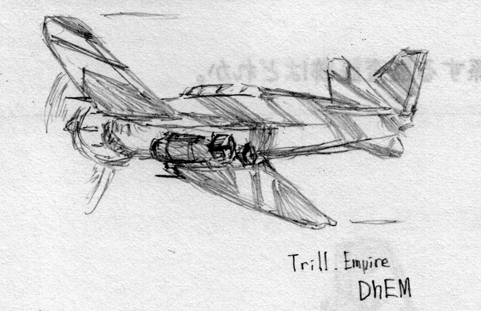 #架空機 #イラスト #Trill_Empire #夏祭り観艦式2022 親善飛行部門 トリル皇国機動航空軍(Trill-Empire Maneuver Airforce)[TEMA]爆撃航空隊より 軽爆撃機 DhEM