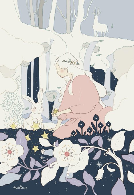 ☃️ ふわふわの牡丹雪がただよっています。 #illustration #デジタルアート #絵 #イラスト好きな人とつながりたい #夕暮れに #イラストレーション #イラスト #ウワサのお客さま #うさぎ生誕祭2023