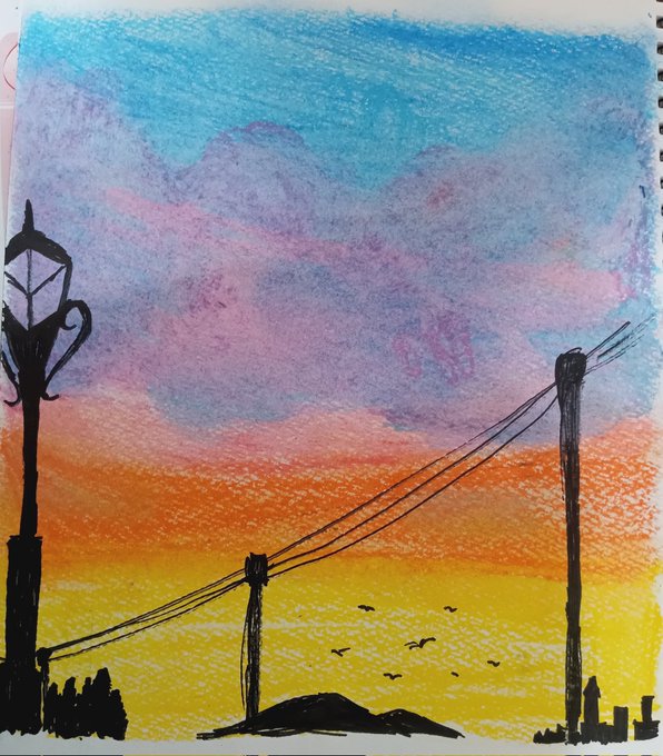 #創作 #オリジナル #落書き #風景 #空 #青空 #朝焼け #夜明け #夕暮れ #夕焼け #絵柄が好みって人がいたらいいなぁ #私の個性はきっと誰かにささる #pixiv に #過去作 あります🍀 pixiv.net/users/74452717 #pixivsketch のドロー機能でマウス描きです☺️ 久々にレイヤー2枚使用☺️ どっちに見えるかな
