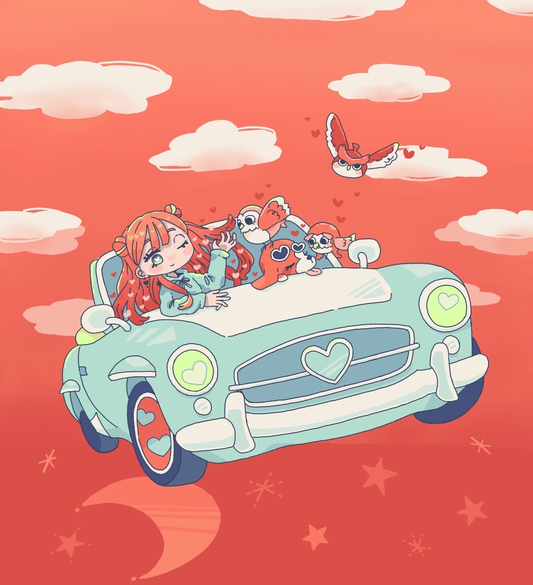 今日の夕方 白いレースと ピンク色の天の川の間で お月さまがニコニコしてた⑅︎◡̈︎* お月さまも 振袖着たかったのかなぁ✧︎*。 とっても可愛い夕空に キュンとした୨୧⑅︎* #イラスト #イラストレーター #illust #illustrator #illustration #ipadpro #iphone13pro #空 #夕空 #上弦の月