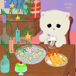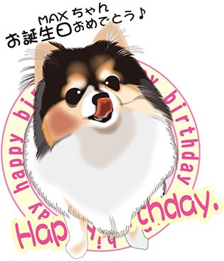 MAX?Diary duffy0415.blog50.fc2.com の HARUMAXさん家のMAXちゃん 7月26日のブログの お誕生日のお祝いのお写真がモデルです♪ #イラスト #夕食 #お誕生日おめでとう #犬 #ポメラニアン #バースデーケーキ