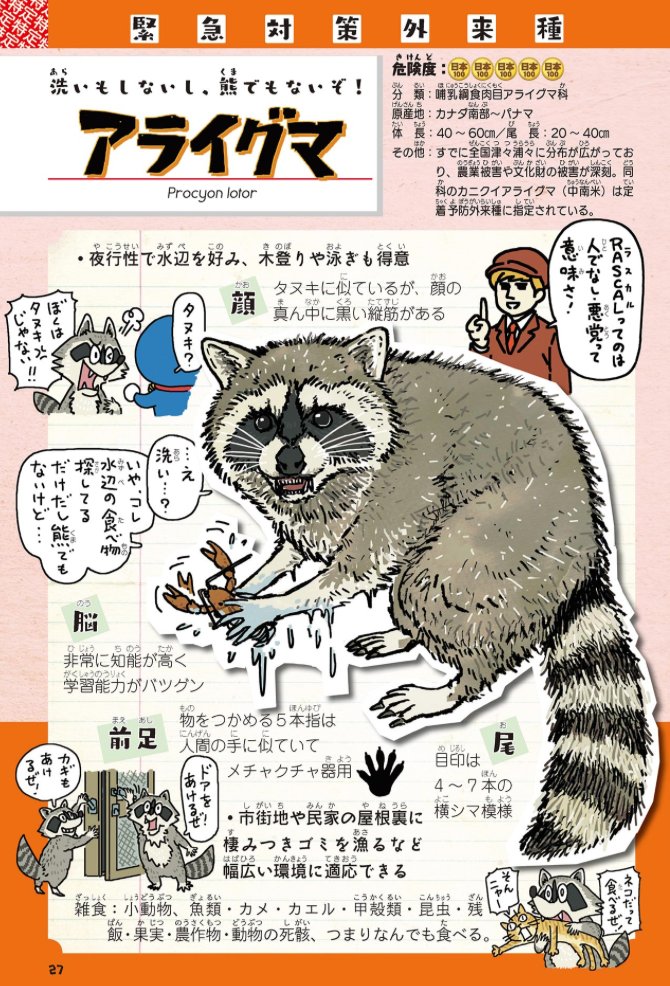 🦝アライグマのすき焼き🍲が出るらしいので、キュートな見た目とは裏腹に超凶暴。70年代のアニメ人気で持ち込まれ年間うん億の農業被害を出すアライグマの見分け方。ちなみにラスカル(Rascal)ってのは「人でなし・悪党」という意味です。 #外来いきもの図鑑 amzn.to/3VO30Re #格付けチェック