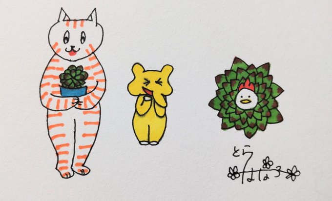 おはようございます!! #多肉植物の日 新種の多肉植物、ニワベニア!!🤭 今日も素適な日曜日を〜🤗 #絵描きさんと繋がりたい #みんなで楽しむTwitter展覧会 #イラスト #油性ペン #マッキー
