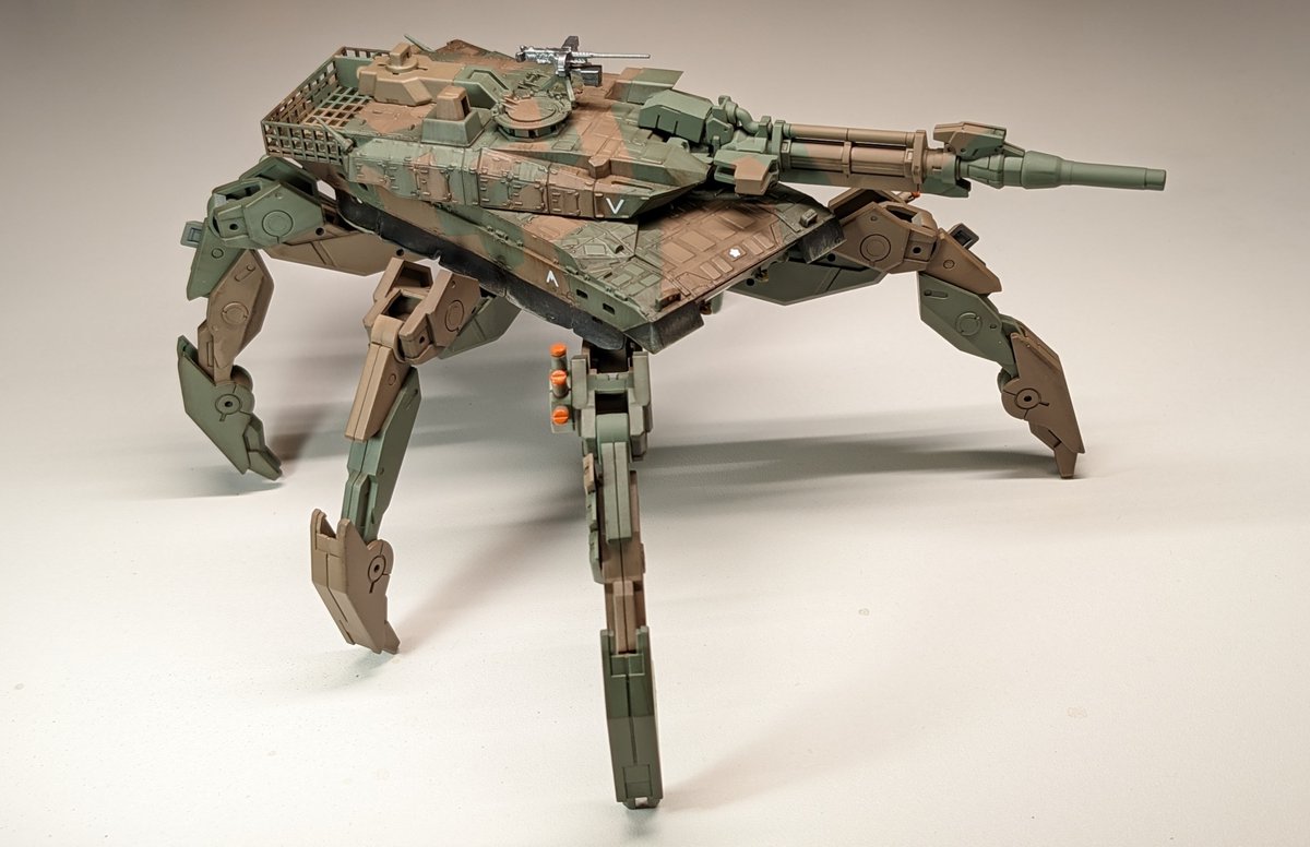 10式多脚戦車 1/72の10式戦車に30MMのオプションパーツで脚を生やしました。車体はスプリッター迷彩で、脚の色は轟雷改10式カラーを参考に塗装しました。 #今月作ったプラモ晒そうぜ #モデルキット999 #30MM #多脚