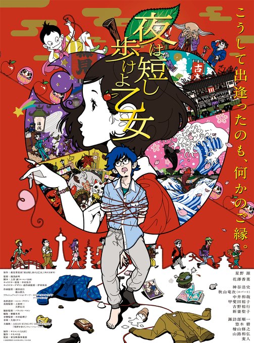 Science SARU 10th Anniversary🎉 / 6年前の今日2017年4月7日は、 #夜は短し歩けよ乙女 が公開された日 \ 累計売上120万部のベストセラー、森見登美彦原作『夜は短し歩けよ乙女』を初の映像化。京都の一夜を舞台にした、ノンストップ恋愛青春物語。
