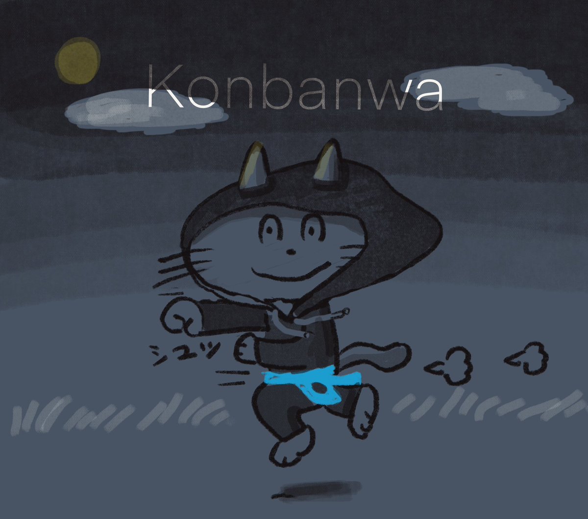 コンバンハ 引き続きRockyで run🐾 ドロボ〜じゃにゃいぞと。 #夜ラン #2月は毎日ねこの日だよね #イラスト #illustraion #みんなdeポジティブ人間化 #みんなで楽しむTwitter展覧会