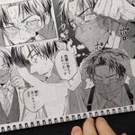 羽海野先生が上げられていたキャラクターの見本をマンガのコマを切って貼ってある本がとても良かったので真似しようと、初期の夜分キャラ貼ってみていた。やっぱりどうしてもだんだん線や顔のバランスや雰囲気が変わってくるし服装もわからなくなるからすぐ見れるといい。 #夜分に吸血失礼します。