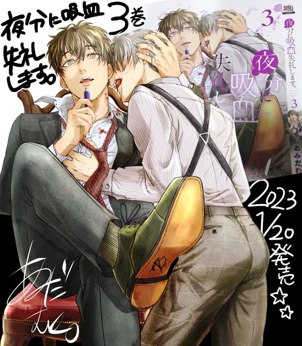 お知らせ📢💥1月20日発売⭐夜分に吸血失礼します。3巻の書店特典と書影になります!予約受付中です🌃✨ 特典は配布のない店舗や、直前にならないと特典が付くか詳細がわからない場合もありますのでお店にご確認をお願いします🙇✨ 気になる方は是非ゲットしてください😸✨ #夜分に吸血失礼します。