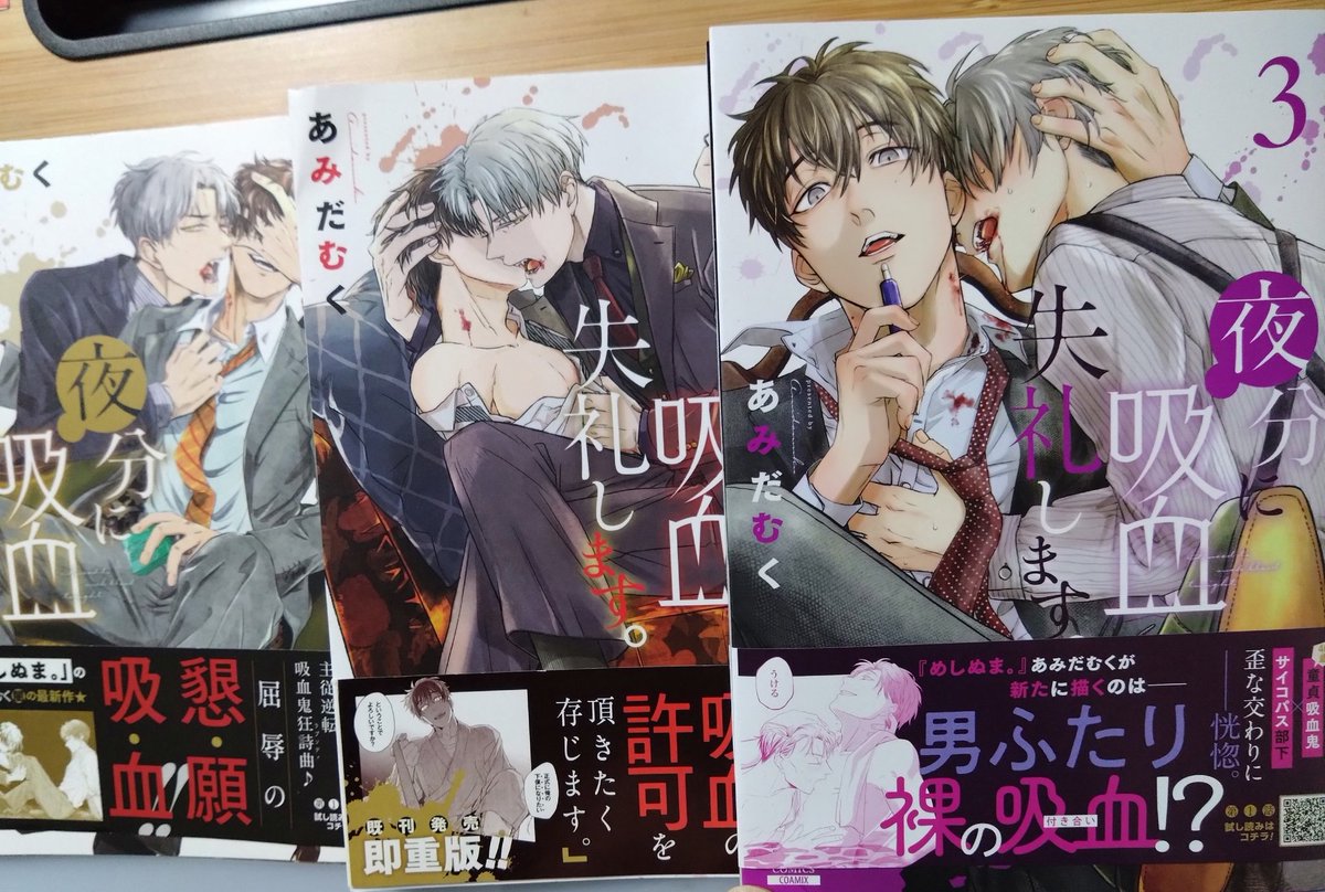 そして頂きました🌟 夜分に吸血失礼します。3巻の献本です🌃🦇✨ 毎回の帯を見ると、あみだむくという作家が描くものがどんどん難解になって行って笑ってしまう(笑)いいですね🌞 1月20日発売です!どうぞよろしくお願いいたします✨ #夜分に吸血失礼します。