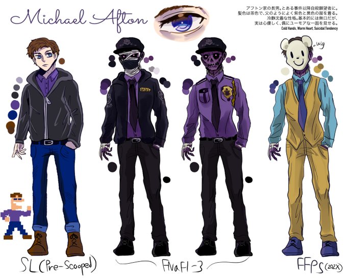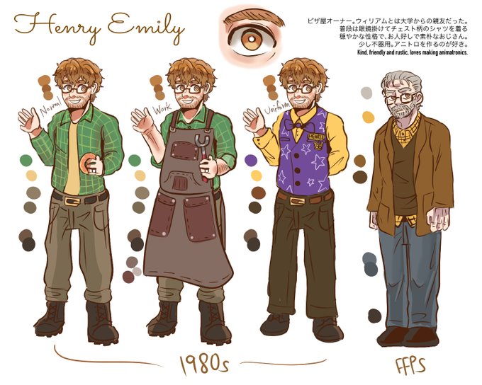 My Afton & Emily family designs ヘンリーのキャラデザ図に致命的なミス見つけたので再投稿ですみません…!囧rz #FNaF #fnaffanart #夜嵐宅ふなふ設定