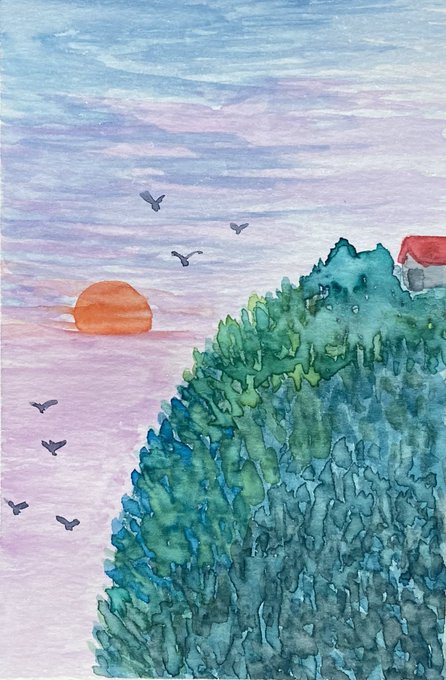#創作 #オリジナル #落書き #風景 #空 #朝焼け #夜明け #月 #絵柄が好みって人がいたらいいなぁ #私の個性はきっと誰かにささる ⬇️の🔗の #pixiv に #過去作 あります🍀 pixiv.net/users/74452717 #pixivsketch のドロー機能でマウス描きです☺️ レイヤー不使用😌 境目が難しい💦
