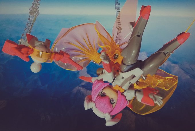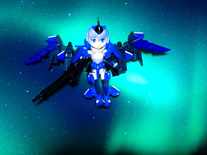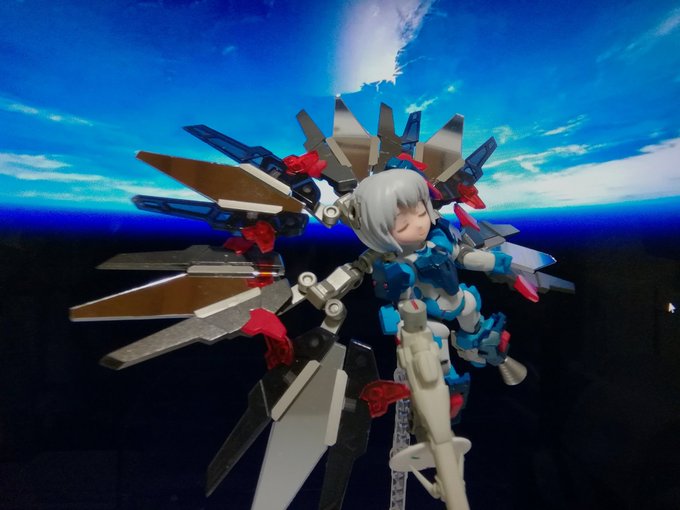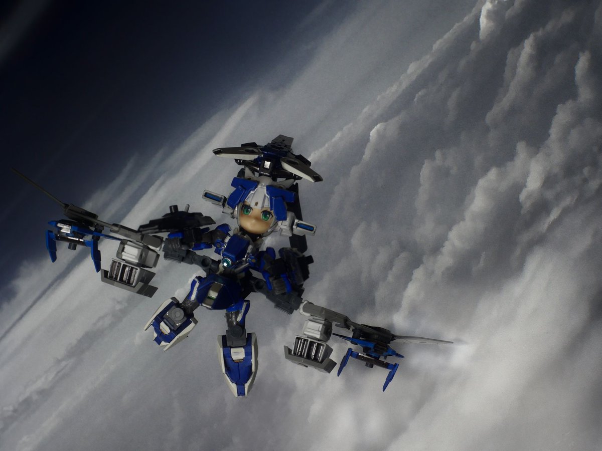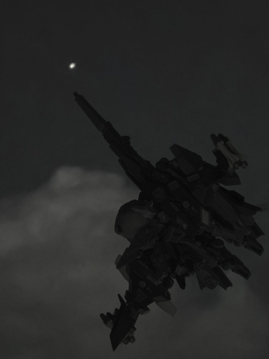 #夜間高々度航空演習SaNTA #デスクトップアーミー 解説とか雑記 高高度に達し、光学で捕捉できなくなり、AI補正などで補正した結果、見えていた星が消える現象?っぽい感じで組み立てました。 フォトンフェザーについては、トライヴァルキリー時にできた技能を盛り込んで設定し、動きに加えてます。