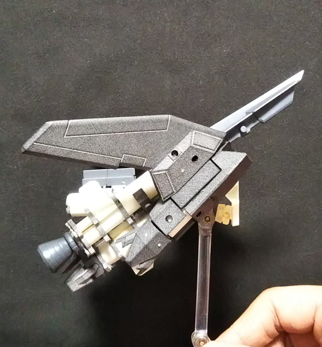 航空モデルの写真を12/24にアップする #夜間高々度航空演習SaNTA に備えて、 #デスクトップアーミー 用新ブーストパック「仮称デルフィナ」を検討中。 皆さんのSaNTA参加待ってます🎄