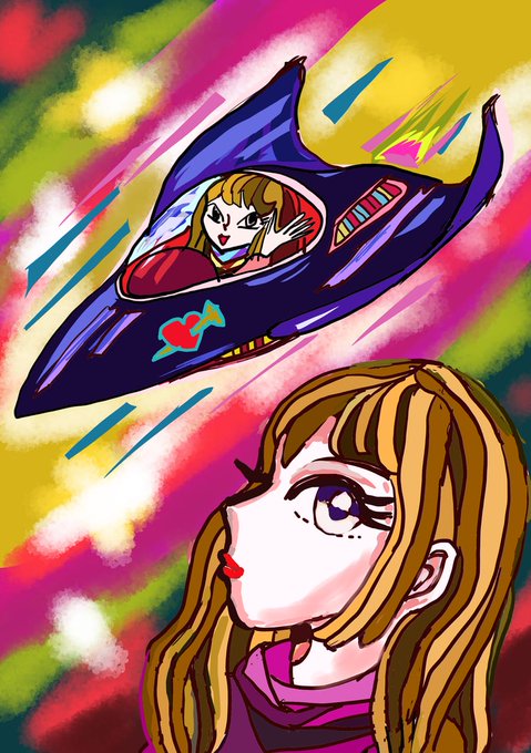 キャッツシスターズ「天の浮舟。猫型天空船をバックに」、、猫に見えないかも??? medibang.com/picture/4n2202… #ARTstreet #MediBang #女の子 #落書き #夢クリエイト