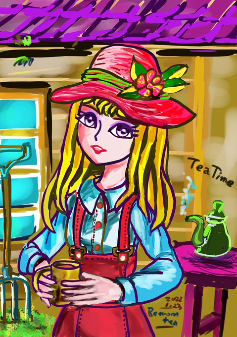 お疲れ様、お茶でもいかが、、。イメージ設定は、酪農家の、娘さん。 medibang.com/picture/bd2201… #ARTstreet #MediBang #女の子 #落書き #夢クリエイト #カントリーガール