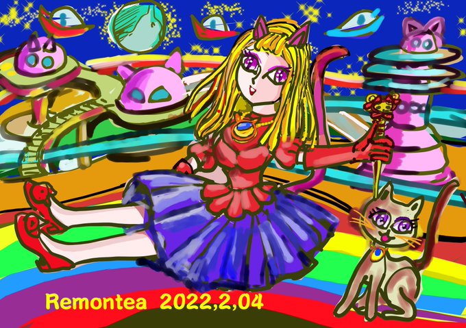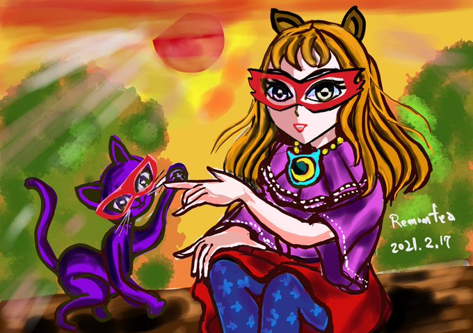 キャッツシスターズ「ニューキャラ ムーンキャットにゃん」夕陽をバックに登場。 medibang.com/picture/tz2202… #ARTstreet #MediBang #女の子 #落書き #夢クリエイト