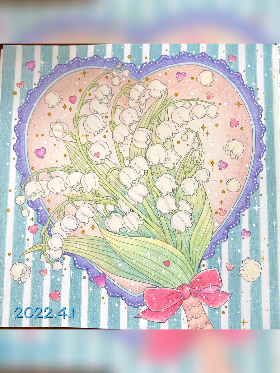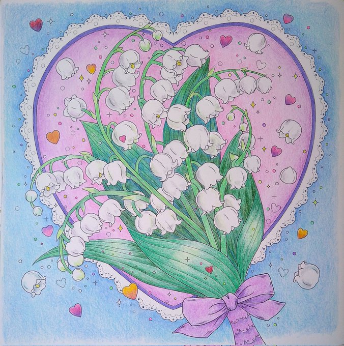 すずらんって可愛い花ですよね。随分昔すずらんの苗を買って来て育てていた所、アブラムシがびっしりついてしまい花が咲かなかった悲しい思い出があります(T_T) #色鉛筆 #大人の塗り絵 #夢色ハピネス塗り絵