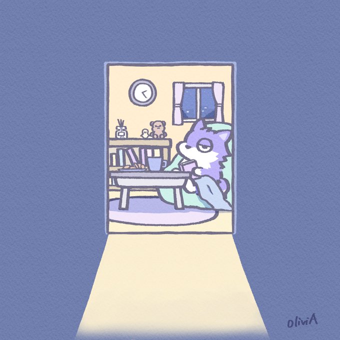 一日の終わりに、夜の静けさに包まれながらページをめくる時間が好き📖🌃 #手乗りおに #小鬼 #大上くん #オオカミ #春の創作クラスタフォロー祭り #創作イラスト #illustration