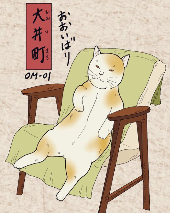 「其のまま地口 おおいみゃち線」 OM03.戸越公園(とごしこうえん)/のろけこうえん 公園で惚気る仲良しカップル猫達。 春になると猫の恋の季節が始まります。 #猫イラスト #猫あるある #ねこ #大井町 #猫好きさんと繋がりたい #猫のいる生活 #catillustration #japaneseart