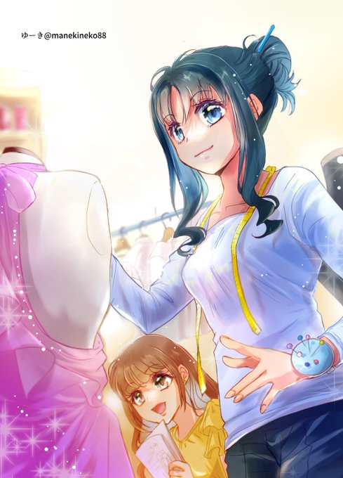 しんぽんさんの #大人プリキュア で、デザイナーのえりかを描かせて頂きました! 誰の為のドレスを制作してるのか… ひなたちゃんもお手伝いしてます☺️ booth.pm/ja/items/44258…