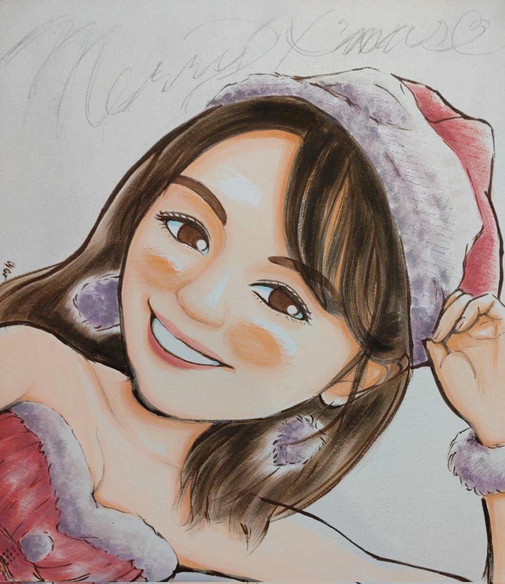#ヤングガンガン 表紙&巻頭グラビア&付録 #大原優乃 さん 今年は #サンタ 描かないつもりでしたが…優乃サンタにつられて描いちゃいました(*´ω`*) 向かって左側に髪を描き足したのは、似度を上げる為です #似顔絵 #イラスト #イラスト好きな人と繋がりたい #絵描きさんと繋がりたい #相互フォロー