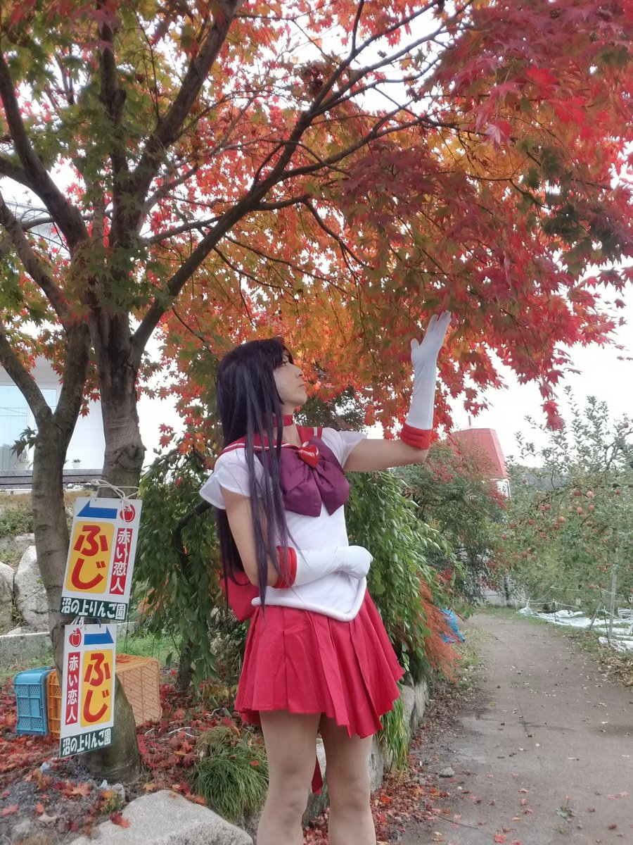 ☆cosplay☆ 美少女戦士セーラームーンSS スーパーセーラーマーズ 紅葉🍁の「沼の上りんご園」🍎(茨城県大子町) 季節限定の3種赤色併せしました😅 (🍎🍁マーズ) #セラムンコスプレ部 #セーラーマーズ #sailorMars #SailorMoon #沼の上りんごっ娘 #沼の上りんご園 #大子紅葉 #大子町
