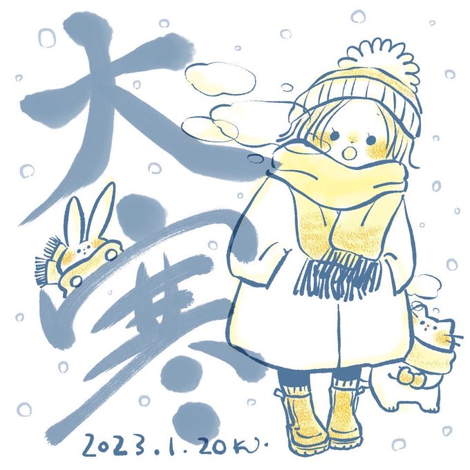 【今日のマシュマロのつぶやき】 「 小寒の氷大寒に解く」 小寒より大寒のほうが あたたかい場合もある 自分だけじゃないと 順番どおりいかないこともあるね〜 まぁ、しゃーないか #キャラクター #かわいい絵本 #みんなで楽しむtwitter展覧会 #イラスト好きな人と繋がりたい #大寒