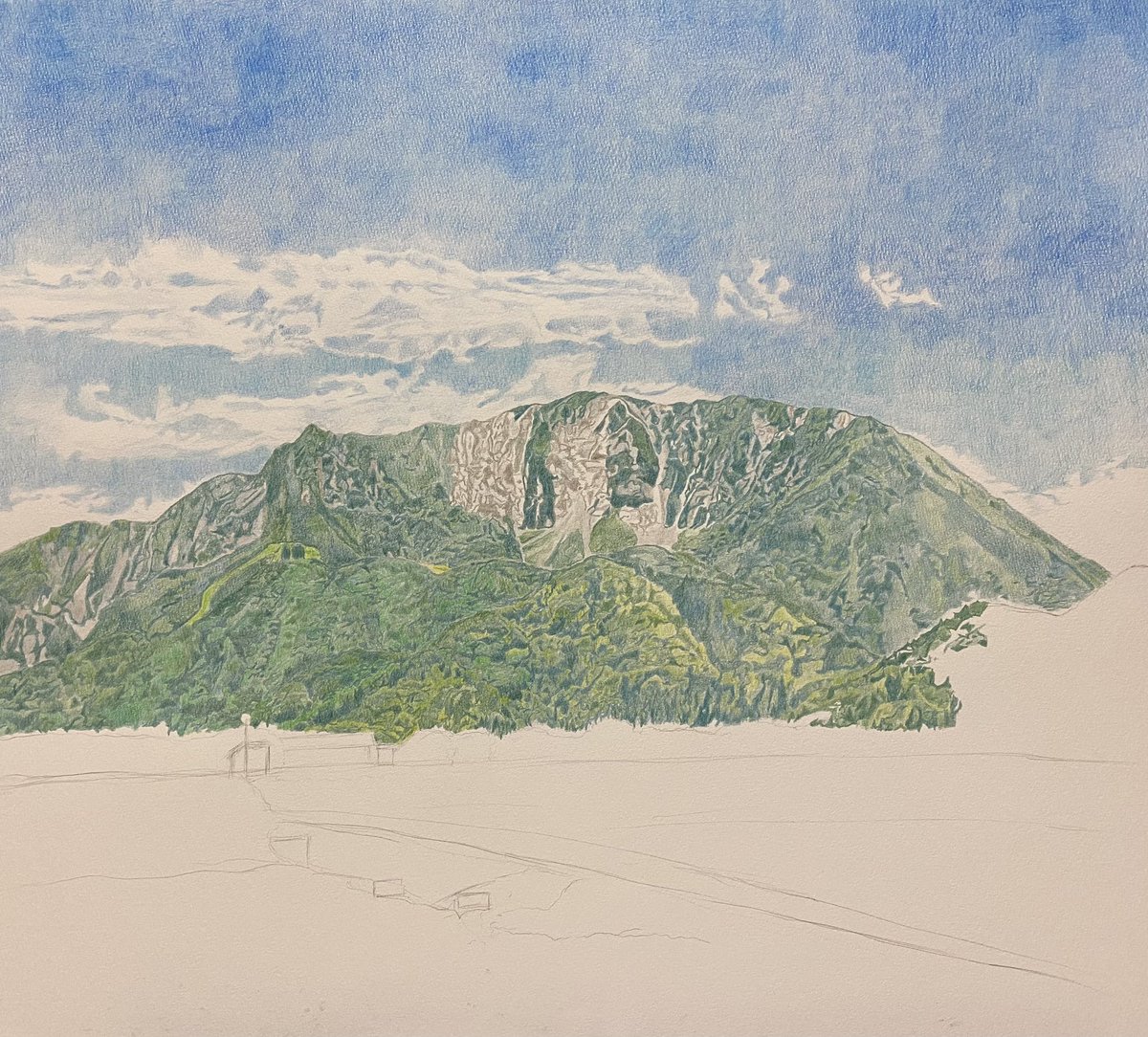 大山が見える展望スペースにはまだ雪が残っていました Mt.Daisen #watercolor #watercolorpainting #illustration #snow #水彩画 #透明水彩 #イラスト #お絵描き #落書き #絵描きの輪 #絵描きさんと繋がりたい #大山 #雪