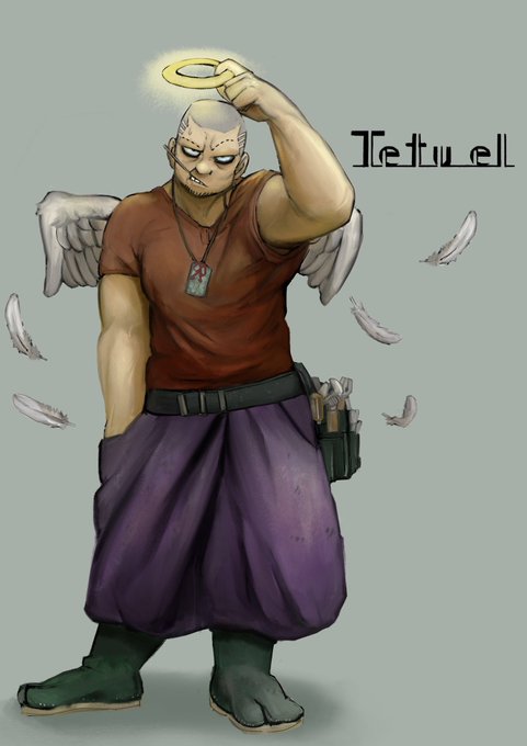 「大天使テツエル」 あっ?なんだこれ。 #イラスト #illustration #art #キャラクターデザイン #characterdesign #original #オリキャラ #うちのこ #イラスト好きさんと繋がりたい #絵描きさんと繋がりたい #少しでもいいなと思ったらRT #おっさん #イカツイ #大工 #足袋 #ニッカポッカ #天使