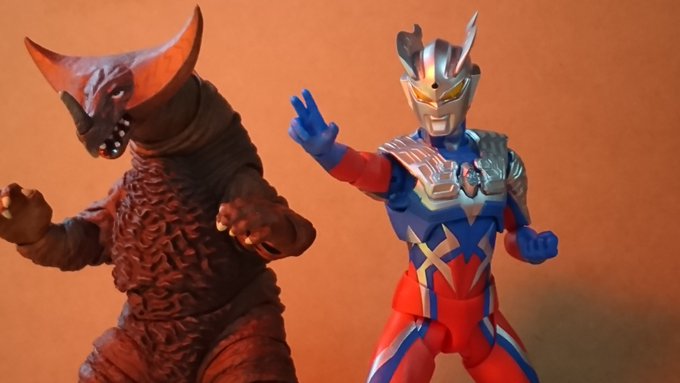 #夜のフィギュア撮影会 早め お題:能力 過去 レイオニクスにはバトルナイザーで怪獣を操る能力がある。 となればジードも・・・? #大怪獣バトル #ウルトラマンジード #ウルトラアーツ #ちいさな巨大特撮 #フィギュア撮影友の会