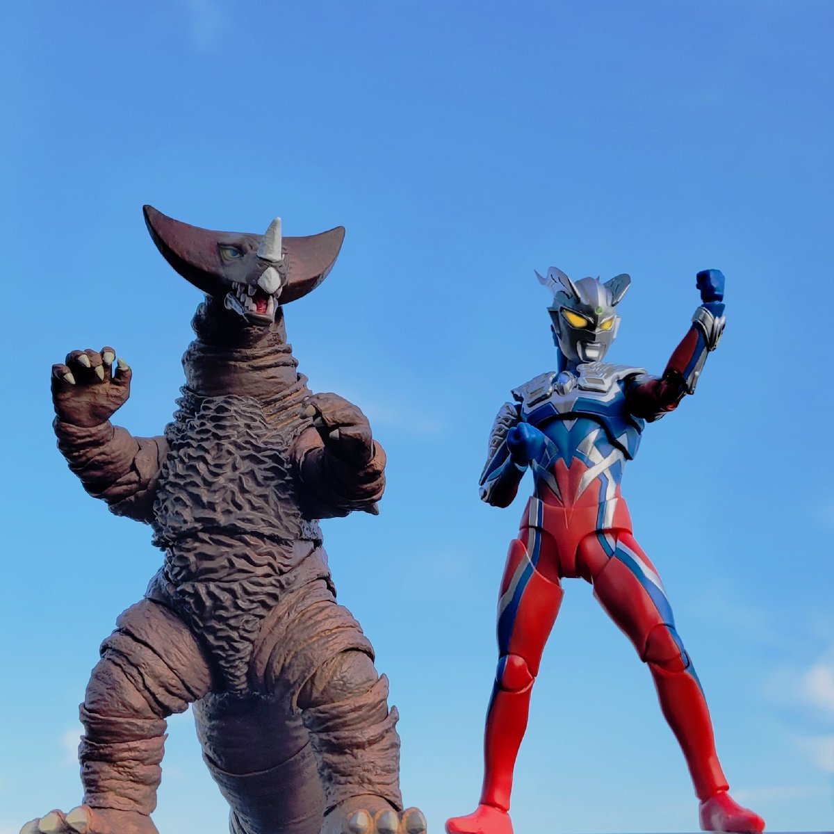 『とどめだ、ゴモラ!!!』 レイのゴモラヘッドの可動域と接続部の小改造による調整が完了したので、野外撮影してみました。 劇中再現完璧過ぎる! #フィギュアーツ写真部 #フィギュア撮影友の会 #オモ写 #大怪獣バトル #ウルトラフィギュア改造同好会 #造って遊ぼ #南翔太 #ウルトラマン #ゴモラ
