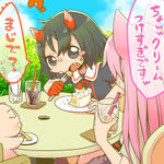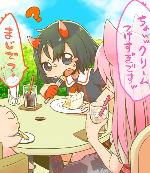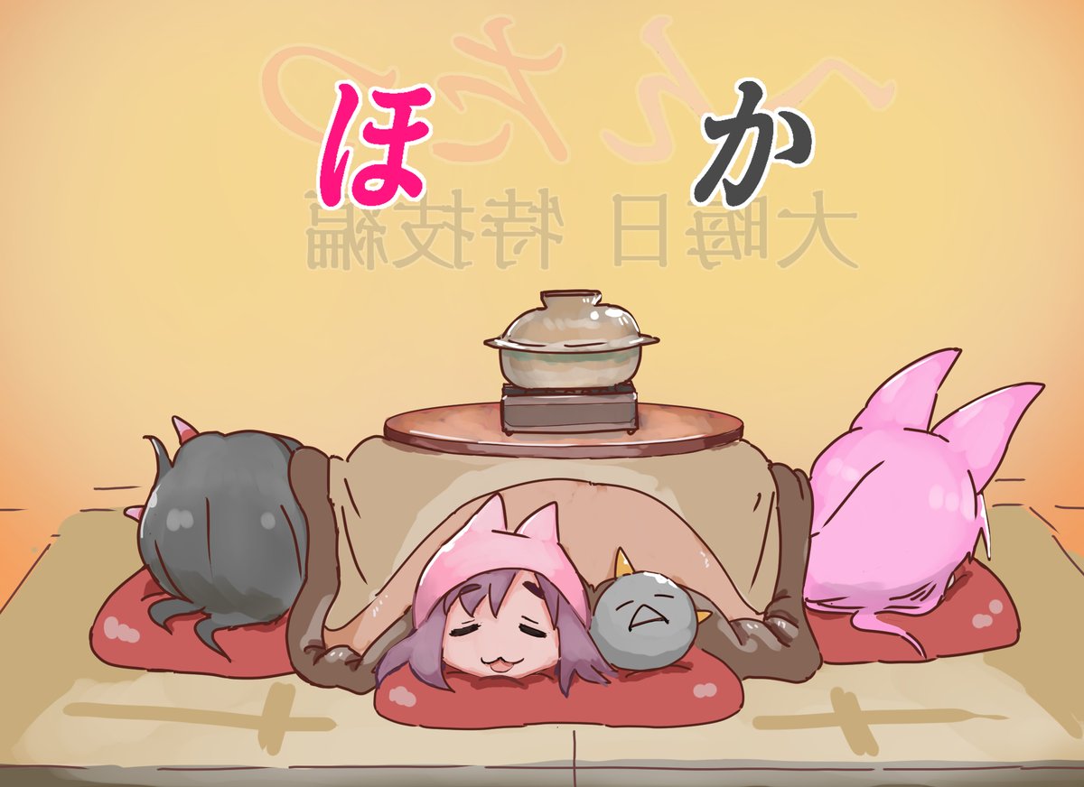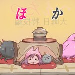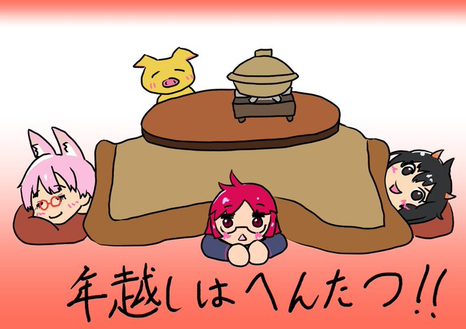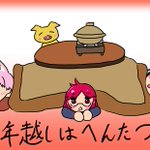 『うたた寝』 こたつでうたた寝する鬼ちゃんとりなぞうとのじゃ姫とデスメタルさやかとモルモルとりつ姉キャッツのイラストです👹😋👸🐈✨ #大晦日だよirodori祭り #へんたつ #へんたつファンアート #irodori #イラスト