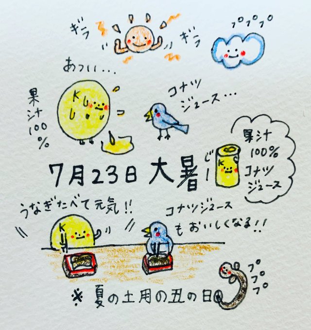 7月23日がとあるコミックを駄洒落した #白ワンピの日 は22年で、23年では22日やったらしい。知るか!観た事ないし。 でも23日は一年で一番暑い #大暑の日! (*ΦдΦ*)それに新作描いたもん♥ #暑いので水着絵で体温調節する #これを見た人は夏らしい画像を貼る #1日一点とにかく描く #今日は何の日
