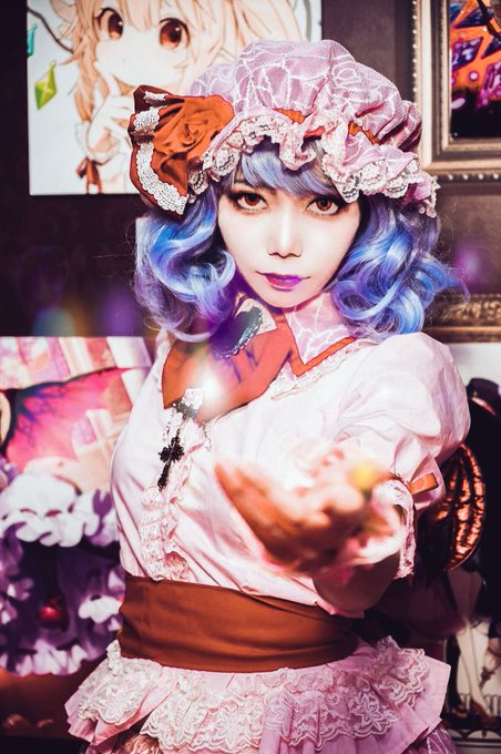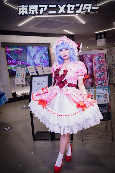 大東方展の内覧会にご招待いただけた際の写真🦇 こちらスカーレット姉妹の豪華すぎるイラストに囲まれて嬉しすぎるコスプレイヤーです 自作衣装もたくさん褒めてもらえて更に嬉しい 大東方展は渋谷MODI2階の東京アニメセンターで開催中! Photo:夢虫様 #大東方展 #コスプレ #レミリア・スカーレット