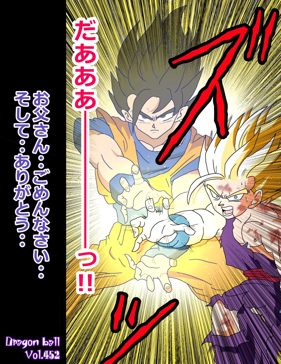 #イラスト #大枠全部描いてDBの実力を再認識させる男 『DRAGON BALL:No.456/5000』 あれから7年の月日が過ぎた。悟飯は17歳。弟の悟天と一緒に、『天下一武道会』の準備だ。 戦い嫌いの悟飯がやる気なのはなぜか。その理由の一つは、父である孫悟空にその日一日だけ会えるからだ。