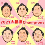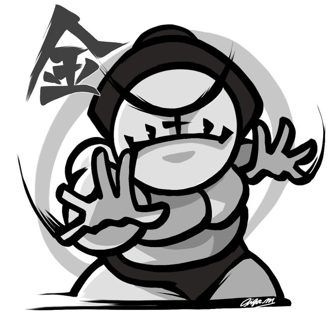 今年の漢字は予想通り「金」になりました。私の中での「金」は、大好きな相撲の大栄翔が横綱から初金星を奪ったことです。顔が金の字で描いた大栄翔です。 #今年の漢字 #大栄翔 #みんなで楽しむTwitter展覧会 #絵描きさんと繋がりたい #アトリエの系譜