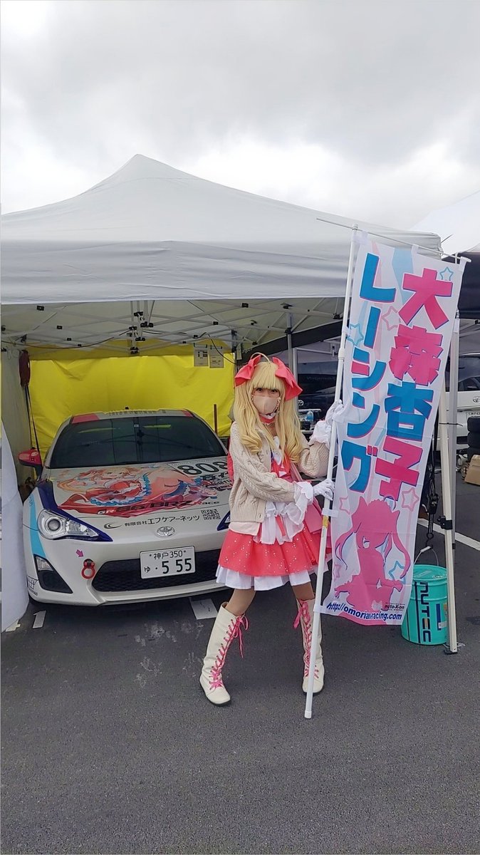 86/BRZ Race 大森杏子Racing 今まででいちばんいい順位でのゴールでした!現地で応援してくれた皆さんも、SNSで応援してくれた皆さんもありがとうございます♡ ファンの方が旗作ってくれた♡ #大森杏子Racing #大森杏子